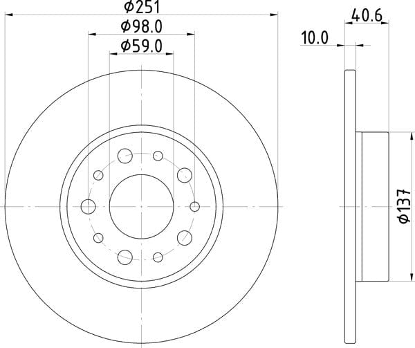 1 X Brake Disc Solid Rear PCD14922 DON 251 mm Diameter