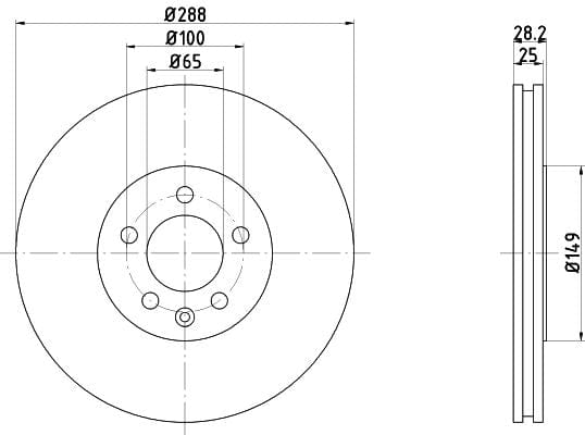 1 X Brake Disc Vented Front PCD15652 DON 280 mm Diameter