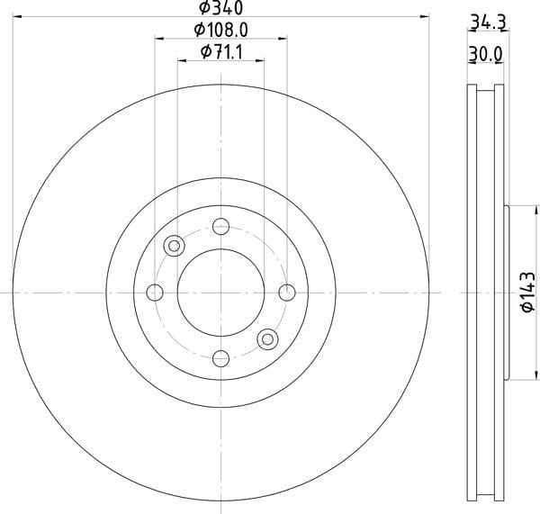1 X Brake Disc Vented Front PCD16071 DON 345 mm Diameter