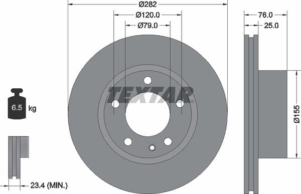 1 X Front Brake Disc Vented 92026700 Textar 282 mm Diameter