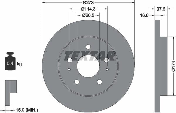 1 X Front Brake Disc Solid 92138200 Textar 273 mm Diameter