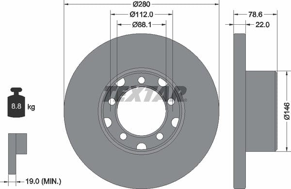 1 X Front Brake Disc Solid 93012400 Textar 280 mm Diameter
