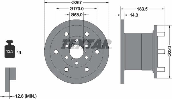 1 X Front Brake Disc Solid 93084400 Textar 267 mm Diameter