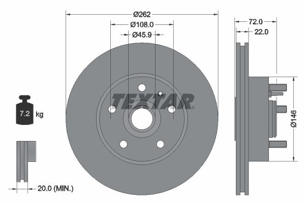 1 X Front Brake Disc Vented 92038600 Textar 262 mm Diameter
