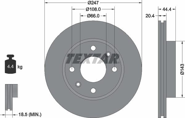 1 X Front Brake Disc Vented 92033800 Textar 247 mm Diameter
