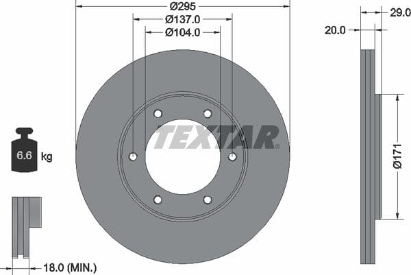 1 X Front Brake Disc Vented 92035600 Textar 295 mm Diameter