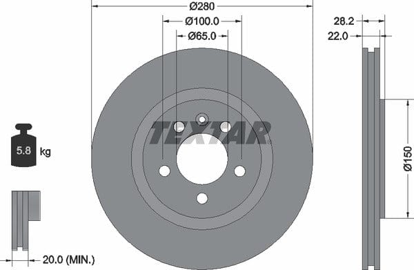 1 X Front Brake Disc Vented 92056000 Textar 280 mm Diameter