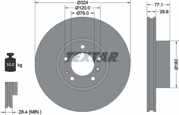 1 X Front Brake Disc Vented 92052300 Textar 298 mm Diameter