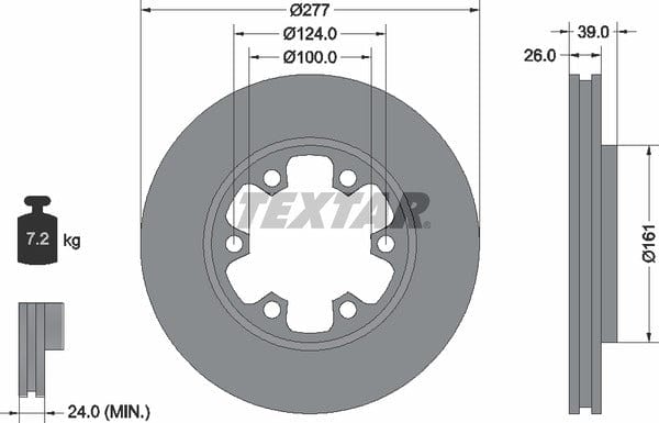 1 X Front Brake Disc Vented 92059000 Textar 277 mm Diameter