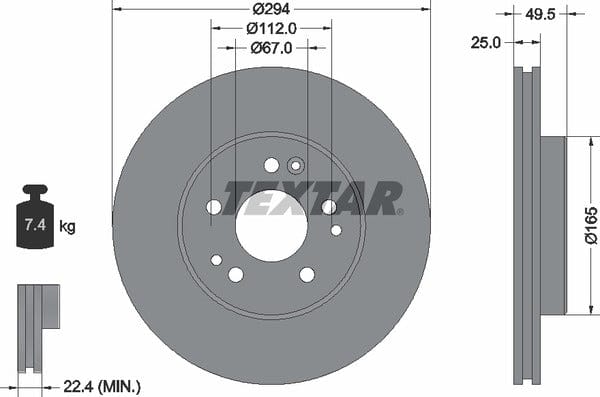 1 X Front Brake Disc Vented 92060000 Textar 294 mm Diameter