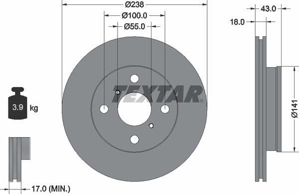 1 X Front Brake Disc Vented 92076500 Textar 238 mm Diameter