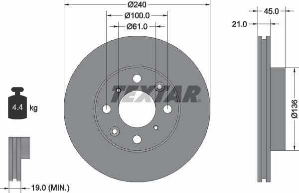 1 X Front Brake Disc Vented 92077800 Textar 240 mm Diameter