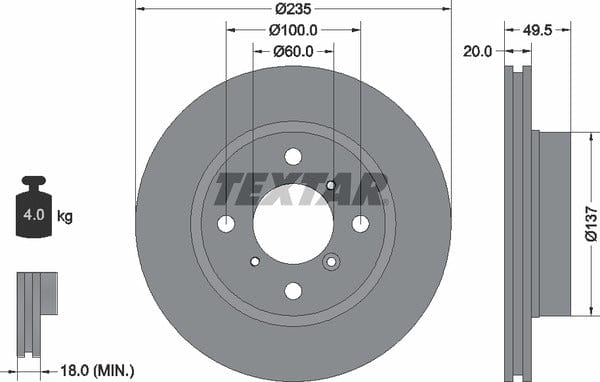 1 X Front Brake Disc Vented 92093200 Textar 235 mm Diameter