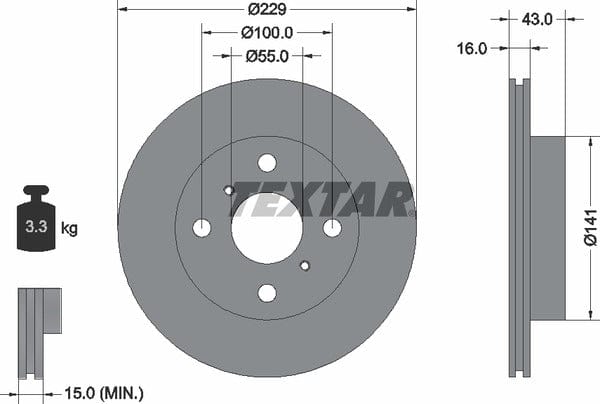 1 X Front Brake Disc Vented 92097900 Textar 229 mm Diameter