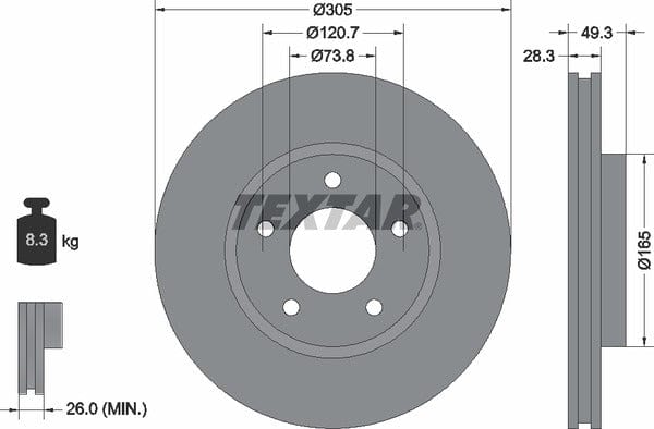 1 X Front Brake Disc Vented 92098900 Textar 305 mm Diameter