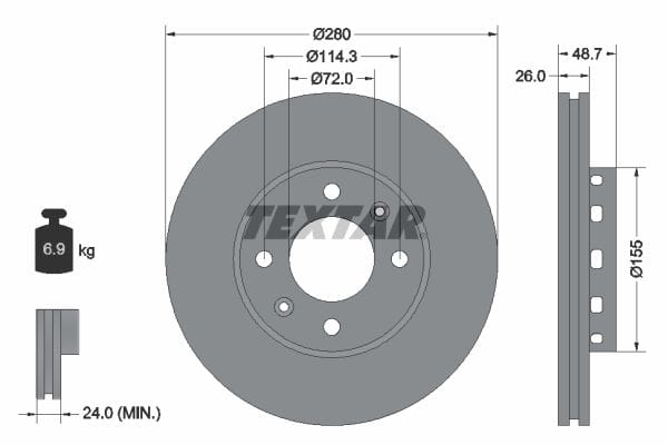 1 X Front Brake Disc Vented 92131700 Textar 280 mm Diameter