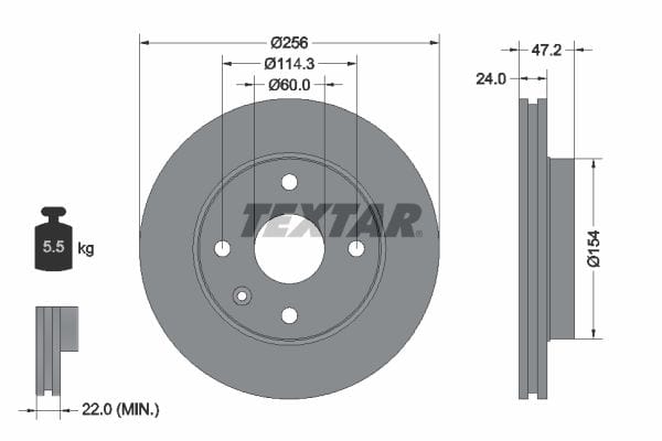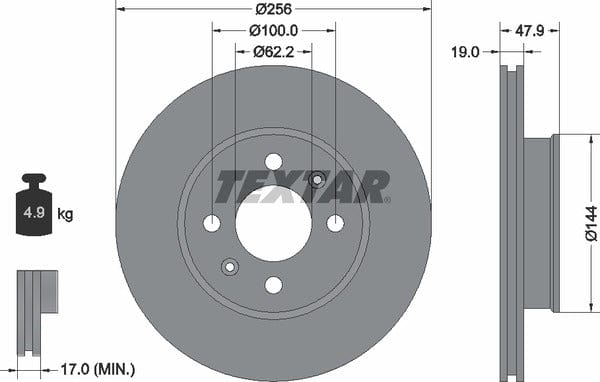 1 X Front Brake Disc Vented 92144700 Textar 256 mm Diameter