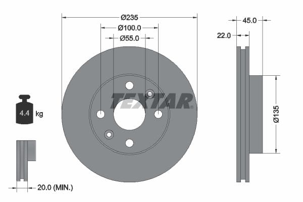 1 X Front Brake Disc Vented 92134200 Textar 235 mm Diameter
