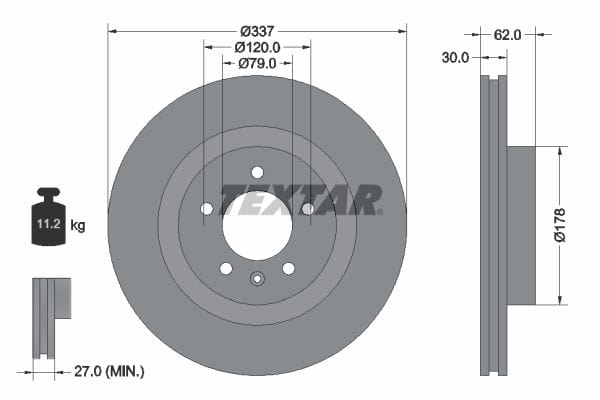 1 X Front Brake Disc Vented 92134600 Textar 337 mm Diameter