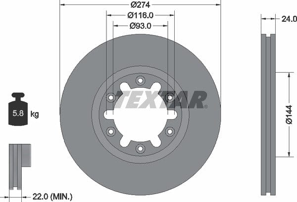 1 X Front Brake Disc Vented 92136300 Textar 274 mm Diameter