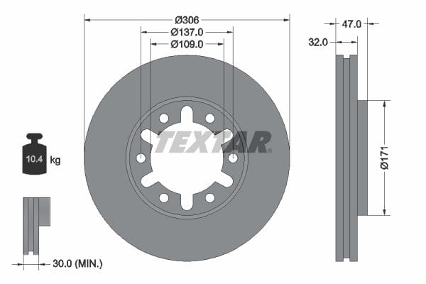 1 X Front Brake Disc Vented 92138300 Textar 306 mm Diameter