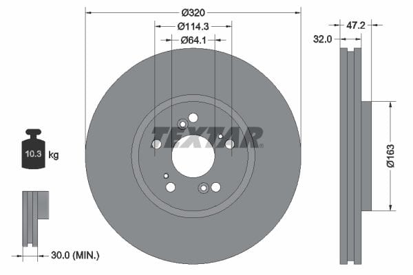 1 X Front Brake Disc Vented 92166300 Textar 320 mm Diameter