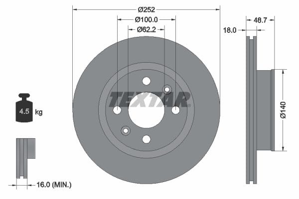 1 X Front Brake Disc Vented 92196500 Textar 252 mm Diameter