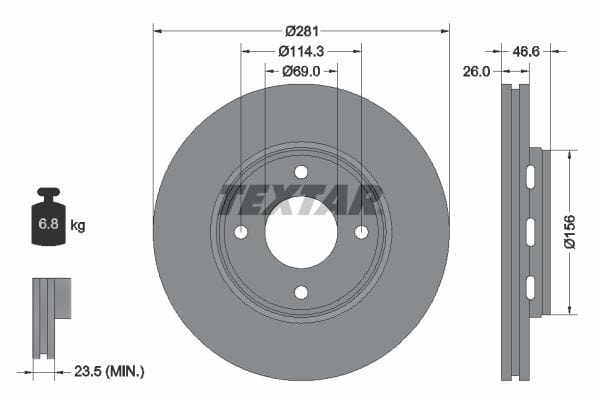 1 X Front Brake Disc Vented 92204400 Textar 281 mm Diameter