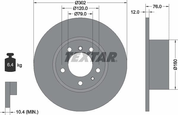 1 X Front Coated Brake Disc Pro Solid 92042103 Textar 302 mm Diameter