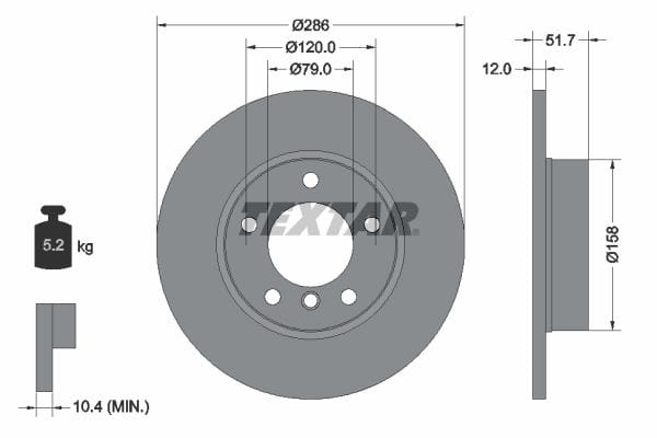 1 X Front Coated Brake Disc Pro Solid 92055503 Textar 286 mm Diameter
