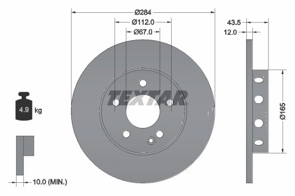 1 X Front Coated Brake Disc Pro Solid 92059303 Textar 284 mm Diameter