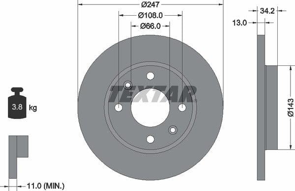 1 X Front Coated Brake Disc Pro Solid 92110803 Textar 247 mm Diameter