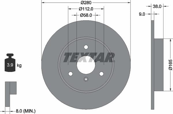 1 X Front Coated Brake Disc Pro Solid 92073703 Textar 280 mm Diameter
