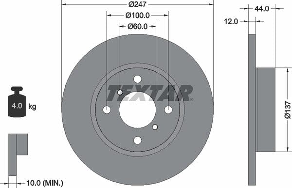 1 X Front Coated Brake Disc Pro Solid 92092803 Textar 247 mm Diameter