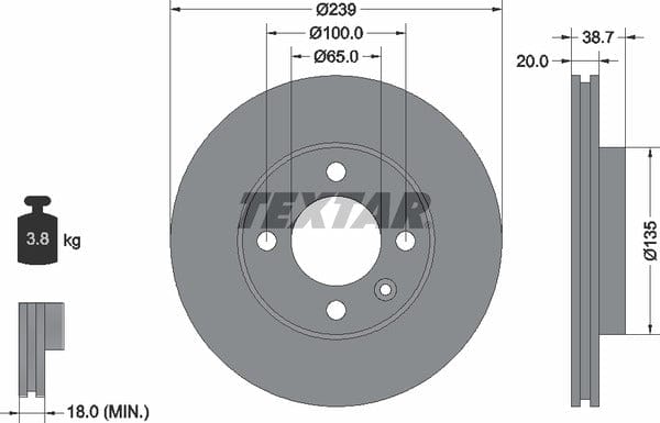 1 X Front Coated Brake Disc Pro Vented 92036203 Textar 238 mm Diameter
