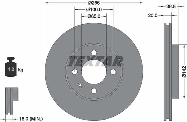 1 X Front Coated Brake Disc Pro Vented 92026503 Textar 260 mm Diameter