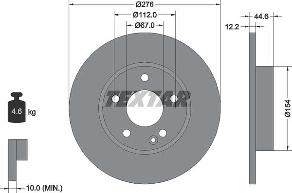 1 X Front Coated Brake Disc Pro Solid 92129203 Textar 276 mm Diameter
