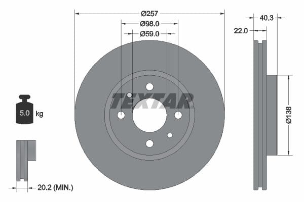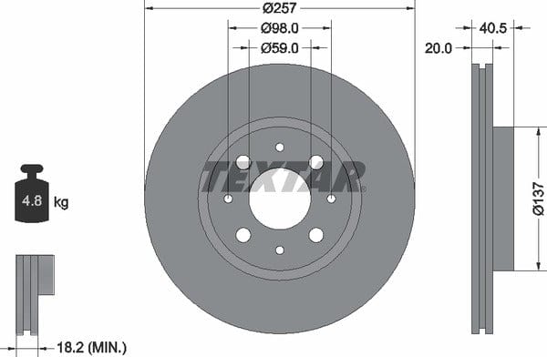 1 X Front Coated Brake Disc Pro Vented 92069603 Textar 257 mm Diameter