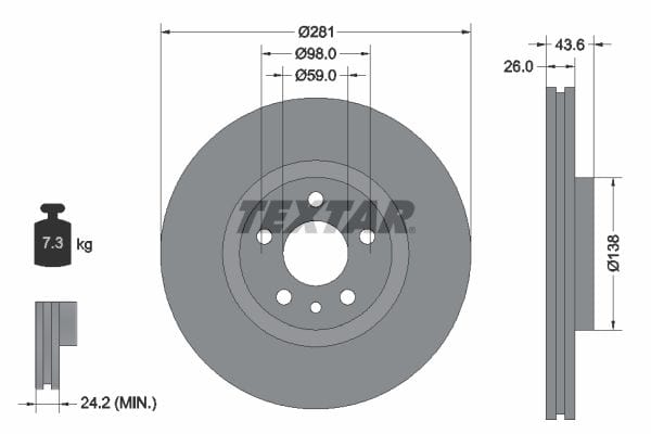 1 X Front Coated Brake Disc Pro Vented 92074003 Textar 281 mm Diameter