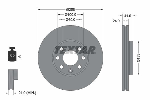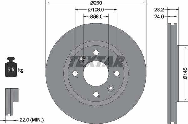 1 X Front Coated Brake Disc Pro Vented 92091303 Textar 260 mm Diameter