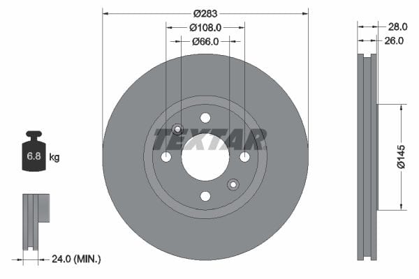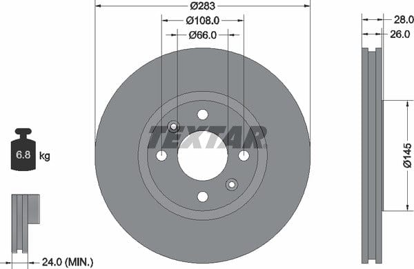 1 X Front Coated Brake Disc Pro Vented 92078703 Textar 283 mm Diameter