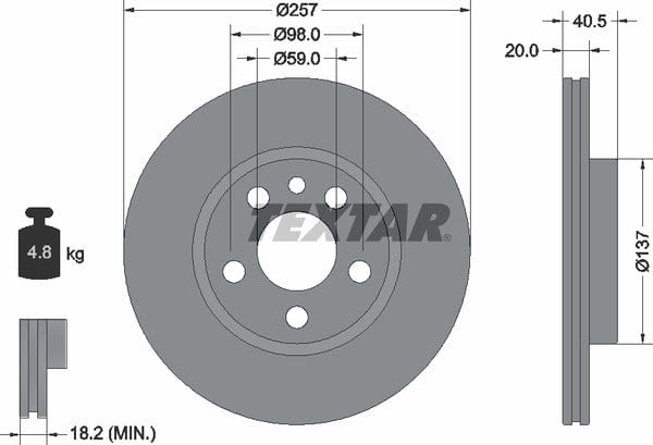 1 X Front Coated Brake Disc Pro Vented 92088003 Textar 257 mm Diameter