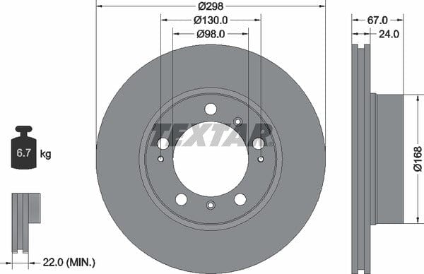 1 X Front Coated Brake Disc Pro Vented 92088803 Textar 298 mm Diameter