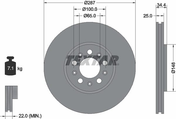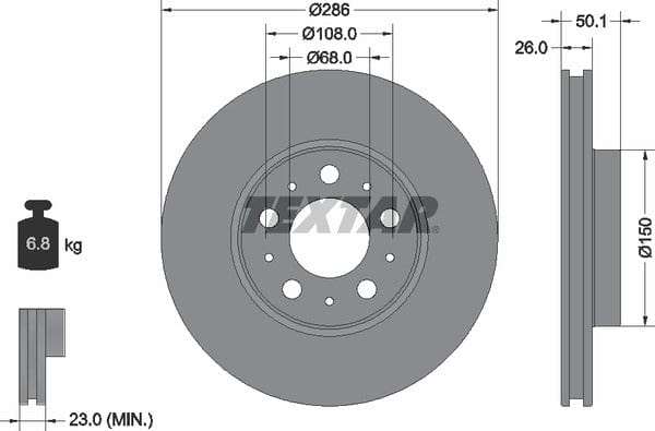 1 X Front Coated Brake Disc Pro Vented 92100503 Textar 286 mm Diameter