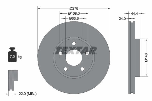 1 X Front Coated Brake Disc Pro Vented 92130303 Textar 278 mm Diameter