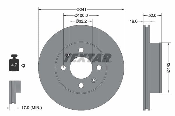 1 X Front Coated Brake Disc Pro Vented 92128503 Textar 241 mm Diameter