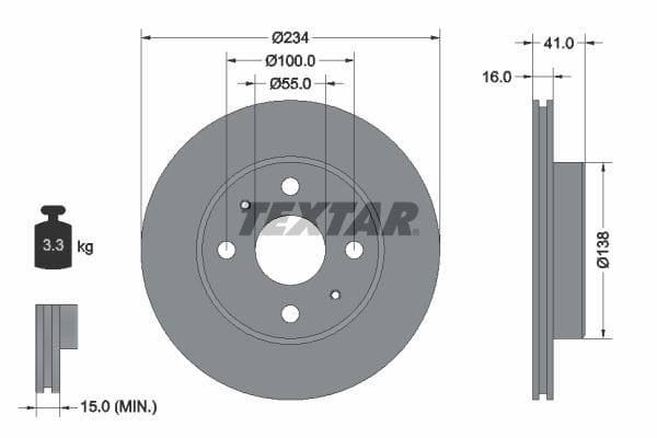1 X Front Coated Brake Disc Pro Vented 92129103 Textar 234 mm Diameter