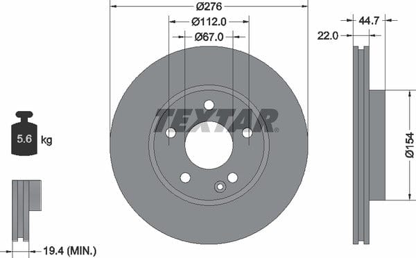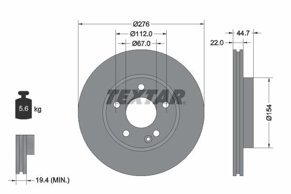 1 X Front Coated Brake Disc Pro Vented 92126403 Textar 276 mm Diameter