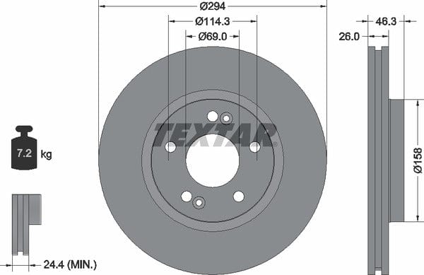 1 X Front Coated Brake Disc Pro Vented 92135203 Textar 294 mm Diameter