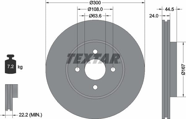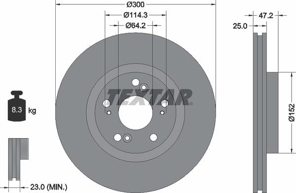 1 X Front Coated Brake Disc Pro Vented 92140903 Textar 300 mm Diameter